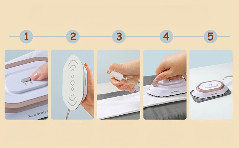 Usa el spray incluido para humedecer ligeramente las arrugas difíciles y desliza la plancha suavemente.